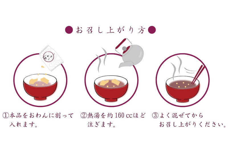 お椀に割って入れ、熱湯を注ぐだけで本格的なおしるこが楽しめます。
